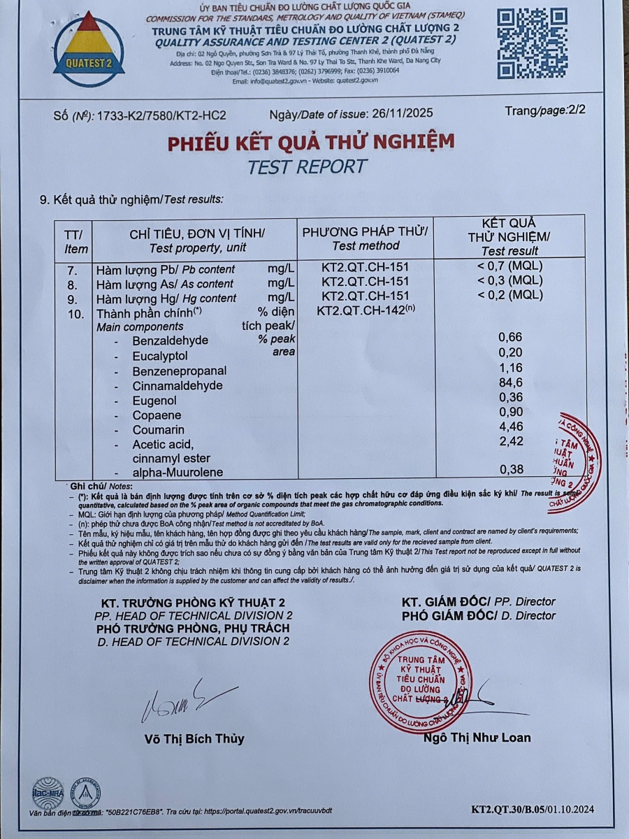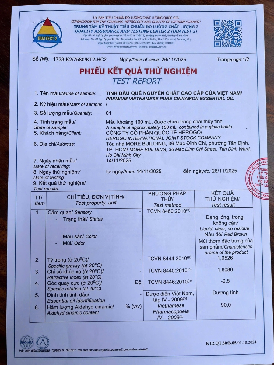 4. Tinh dầu quế đã được kiểm nghiệm chất lượng